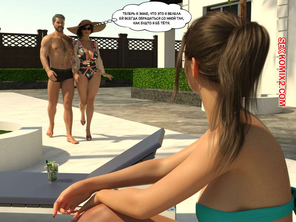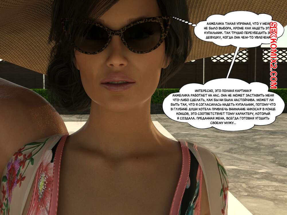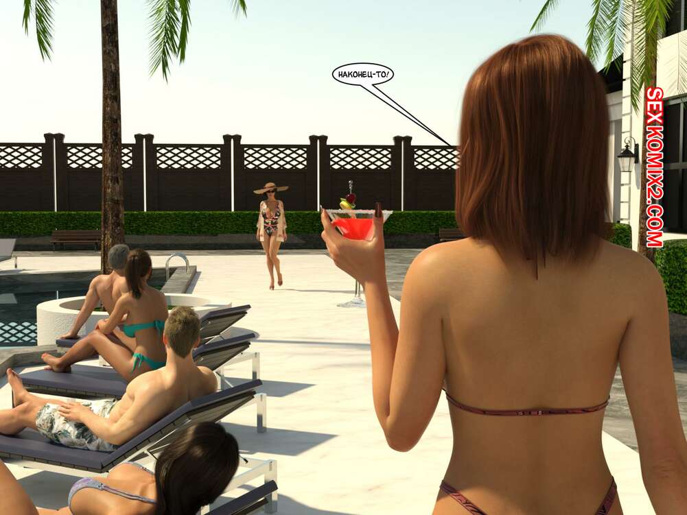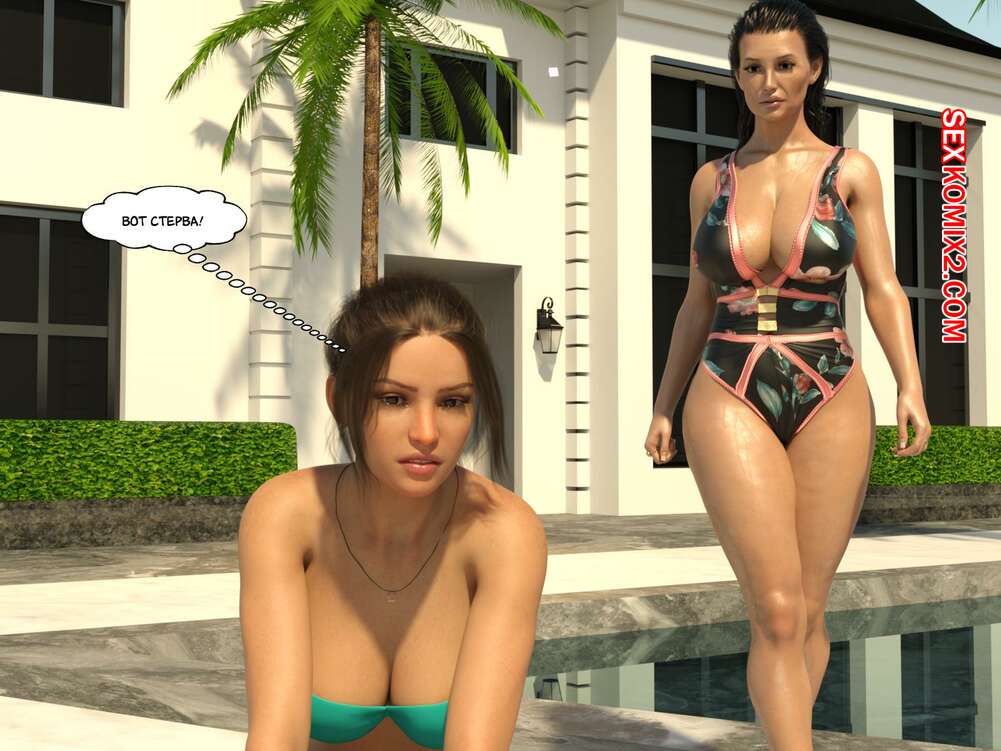 Порно комикс Зеркало Афродиты. Часть 22. Пот, кровь и слёзы. Melissa822 Сисястая брюнетка милфа надела сексуальный купальник и отправилась купаться в бассейне. Там она осталась наедине с молодой девушкой, которая стала задавать милфе откровенные вопросы.